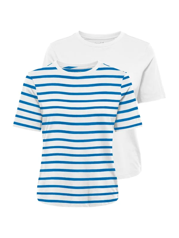 Design: Gevoerde zoom/rand, Nektape; Materiaal: Jersey; Halstype: Ronde hals; Motief: Gestreept; Extra's: Voelt zacht aan; Pasvorm: Normale pasvorm; Aantal: 2 Pack; Armlengte: Kwartmouw; Lengte: Normale lengte