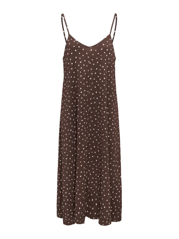 Design: Gevoerde zoom/rand, Ingelegde kraag; Materiaal: Gerecycled materiaal; Halstype: V-hals; Motief: Gestippeld; Soort bandjes: Spaghettibandjes; Extra's: All-over patroon, Gladde stof; Lengte: 3/4 lengte; Snit: Recht; Pasvorm: Normale pasvorm; Armlengte: Mouwloos