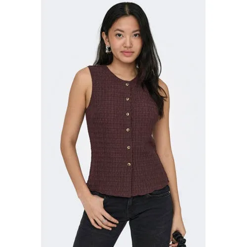 Voor een nette maar relaxte laag in je dagelijkse outfits is deze ONLY mouwloze top Onlilse een fijne basis. De top heeft een subtiele structuur in de stof, wat direct wat extra diepte geeft aan je look. De ronde hals en knoopsluiting voorlangs zorgen voor een vrouwelijke, toegankelijke uitstraling. Ideaal om over een T-shirt, blouse of jurk te dragen, maar ook mooi direct op de huid op een warmere dag.Details die je elke dag kunt dragen Mouwloos model, perfect om te dragen in de lente of in laagjes het hele jaar door Ronde hals voor een tijdloze en makkelijk te combineren look Knoopsluiting aan de voorkant waardoor je de top zowel open als dicht kunt dragen Effen kleur, eenvoudig te stylen met jeans, een pantalon of een rok Zachte, soepele stof die prettig aanvoelt op de huid Valt normaal, kies gewoon je gebruikelijke maat Onderhoudsvriendelijk: wasbaar op 30 graden, lauw strijkbaar en niet in de drogerVeelzijdig voor je dagelijkse garderobeDeze top uit de Daily collectie is een fijne keuze voor alledaagse momenten. Combineer met een high waisted jeans en sneakers voor een casual dag, of draag de top over een blouse met een nette broek voor een meer geklede look. De effen kleur maakt het makkelijk om te mixen met de rest van je kledingkast.ONLY: moderne mode voor elke dagONLY staat bekend om modieuze items die goed passen in een druk dagelijks leven. De collecties volgen de trends, maar blijven tegelijk draagbaar en toegankelijk. Met deze top haal je een stijlvaste basic in huis waar je seizoen na seizoen plezier van hebt.Een comfortabele, veelzijdige top die moeiteloos aansluit bij jouw dagelijkse stijl.