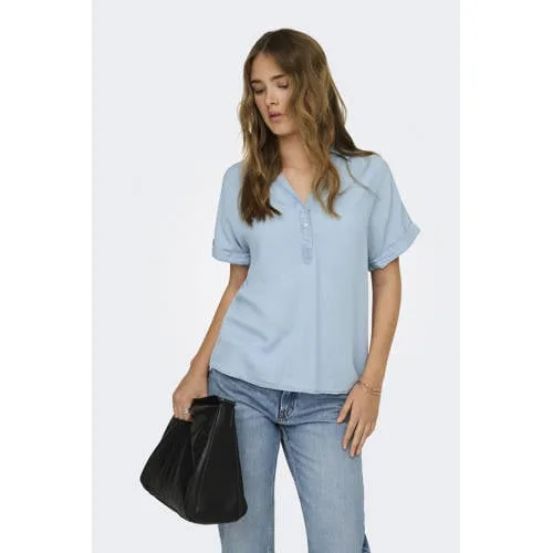 Only Blouse korte mouw 15363976 CHARIS in de kleur Licht blauw