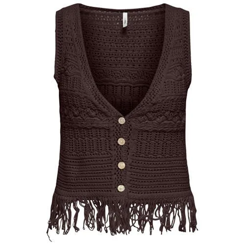 Met deze stijlvolle bruine gilet van Only ben jij klaar voor iedere gelegenheid. De gilet is gemaakt van een mix van katoen en polyester, wat zorgt voor een comfortabele pasvorm en duurzame kwaliteit. Het lichte materiaal maakt deze gilet perfect voor zowel binnen als buiten. Of je nu een formele look wilt creëren of juist gaat voor een casual outfit, met deze gilet kun je alle kanten op. Combineer met een blouse en pantalon voor een zakelijke look, of draag het over een T-shirt en jeans voor een trendy uitstraling. Laat jouw persoonlijkheid stralen met de gilet dames van Only, verkrijgbaar .