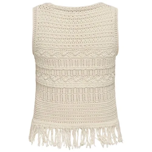 Dames bodywarmer van Only;Model 'Alix';look: gebreide look;Pasvorm: regular fit;Sluiting: enkele knoopsluiting;Motief: structuur;rompzoom: franjes;materiaalverwerking: ajourtricot;Materiaal: katoenmix