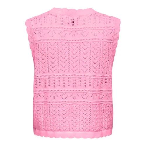 Deze gebreide dames top van ONLY is een basic voor elke dag. Het mouwloze model heeft een vrouwelijke V-hals en een knoopsluiting aan de voorkant, waardoor het vestje zowel open als dicht gedragen kan worden. De combinatie van crochet details en een gebreide structuur geeft een rustige, maar verzorgde uitstraling die goed past bij het voorjaar.Comfortabele pasvorm en verzorgde details Mouwloze top met rechte schouderlijn voor een frisse, open look V-hals die mooi aansluit en ruimte laat voor een ketting Effen design, waardoor de top makkelijk te combineren is Gemaakt van 60% katoen en 40% acryl voor een zachte, soepele stof Normale pasvorm volgens het maatadvies Geen zakken voor een strak en rustig silhouet Wasbaar op 30 graden, warm strijkbaar en niet geschikt voor de droogtrommelVoor dagelijkse outfits in het voorjaarDe top komt uit de Daily collectie en is ideaal voor het lente seizoen. Draag het model op een hoge jeans of een luchtige broek. Dichtgeknoopt als top of open over een T-shirt of topje geeft het snel een extra laagje zonder zwaar aan te voelen.ONLY als betrouwbare stijlpartnerONLY ontwerpt kleding die aansluit op het dagelijks leven. De collecties zijn onderling combineerbaar en sluiten aan bij verschillende stijlen, van casual tot meer gekleed. Zo voeg je makkelijk een draagbare, moderne basic toe aan je garderobe.Een praktische top die zich eenvoudig laat aanpassen aan je dag.