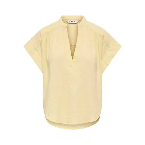 Breng licht in je garderobe met deze gele katoenen dames top met V-hals van ONLY. De gele kleur sluit mooi aan bij het lentegevoel en geeft elke outfit direct een heldere uitstraling. De rechte korte mouwen en de luchtige, geweven stof voelen zacht aan op de huid, ook op warmere dagen. Gemaakt van 100% katoen, wat zorgt voor een natuurlijke touch en comfortabel gevoel tijdens het dragen.Frisse basic voor elke dag Gemaakt van 100% katoen voor een ademend en zacht gevoel Geweven kwaliteit die mooi valt en een nette uitstraling geeft V-hals die het decolleté subtiel accentueert Korte, rechte mouwen voor een casual en verzorgde look Effen gele kleur die goed te combineren is met denim, wit of neutrale tinten Valt normaal volgens het maatadvies, kies je gebruikelijke maat Wasbaar op 30 graden en lauw strijkbaar (1 punt) voor eenvoudig onderhoud Niet drogen in de droogtrommel om de pasvorm en kleur langer mooi te houdenIdeaal voor dagelijkse looksDeze top komt uit de 'Daily' collectie en is ontworpen voor alledaagse outfits. Combineer met een jeans en sneakers voor een ontspannen dag, of met een rok en sandalen voor een iets gekledere look. De effen kleur maakt het ook een praktische basis onder een vest of blazer.ONLY: mode voor elke dagONLY ontwikkelt modieuze items die goed aansluiten op het dagelijkse leven. De collecties volgen actuele trends en bestaan uit modellen die makkelijk te stylen zijn. Zo kun je je kledingkast stap voor stap aanvullen met toegankelijke stukken die bij veel gelegenheden passen.Een gele basic die een fijne basis vormt voor verschillende outfits.