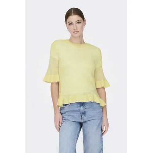 Deze zachte top van ONLY is een fijne basis voor elke dag. De ONLY ONLELLA top met ruches heeft een ronde hals en elegante driekwartmouwen, waardoor het model het hele jaar door goed te dragen is. Subtiele ruches langs de schouders en mouwboorden geven een vrouwelijke uitstraling, terwijl de rechte mouwen zorgen voor een rustige, moderne look.Verfijnde details en comfortabel materiaal Gemaakt van 65% acryl, 25% polyester en 10% polyamide voor een soepele, zachte touch Ronde hals die mooi aansluit zonder strak te zitten Driekwartmouwen met rechte pasvorm, praktisch en luchtig Ruches aan de bovenkant voor een speels, verfijnd detail Geen zakken voor een strak en rustig silhouetEen top voor werk, vrije tijd en alles daartussenDeze top past makkelijk in je dagelijkse garderobe. Combineer met een nette broek voor een verzorgde werklook of draag hem op een jeans in het weekend. De driekwartmouwen zijn praktisch in het voorjaar en najaar en kunnen in de winter eenvoudig onder een blazer of vest.ONLY: eigentijdse mode voor elke dagONLY staat bekend om moderne, draagbare mode die goed aansluit op het dagelijkse leven. De collecties combineren actuele trends met comfortabele pasvormen en praktische details. Zo vul je je kledingkast eenvoudig aan met items die je vaak en graag draagt.Een fijne, vrouwelijke top die moeiteloos meebeweegt met jouw dag.