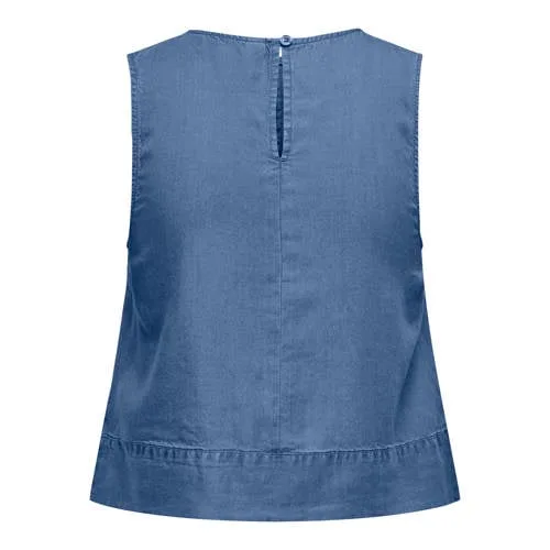 Deze mouwloze dames top van ONLY in medium blue denim is een lichte, geweven top die je het hele seizoen door kunt dragen. De effen kleur oogt rustig en fris, terwijl de subtiele details zorgen voor een verzorgde uitstraling. De top is gemaakt van 100% lyocell, een soepel materiaal dat fijn aanvoelt op de huid en mooi valt langs het lichaam.Verfijnde details voor elke dag Gemaakt van 100% lyocell, een soepele stof met een zachte touch Mouwloos model, ideaal voor lente en warme dagen Ronde hals die comfortabel aansluit Knoopsluiting aan de voorkant voor een nette afwerking Effen medium blue denim kleur die makkelijk te combineren is Geweven kwaliteit voor een mooie, luchtige uitstraling Valt normaal volgens het maatadvies Wasbaar op 30 graden en lauw strijkbaar (1 punt)Casual en vrouwelijk te stylenCombineer deze top met een witte jeans of een lichte broek voor een frisse voorjaarslook. Voor een meer relaxte outfit staat hij ook mooi op een korte broek of een soepel rokje. Met sneakers oogt het meteen casual, met sandalen krijgt de outfit een iets meer geklede uitstraling.ONLY voor alledaagse favorietenONLY richt zich op moderne, draagbare mode voor elke dag. De collectie biedt veel items die je makkelijk combineert en die prettig zitten in het dagelijkse leven. Deze top past daar goed bij, als een basisstuk waar je vaak naar grijpt.Een lichte, vrouwelijke top die je garderobe rustig en toch verzorgd aanvult.