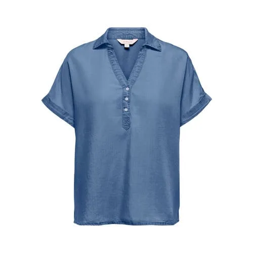 Fris, licht en helemaal klaar voor het nieuwe seizoen: deze ONLY dames top in medium blue denim is een fijne basic voor elke dag. De top is gemaakt van 100% lyocell, een soepel vallende stof die zacht aanvoelt op de huid. De medium blue denim kleur oogt ontspannen en tijdloos, waardoor je deze top makkelijk combineert met de rest van je garderobe.Verfijnde details voor alledaags draaggemak Gemaakt van 100% lyocell, een gladde en soepel vallende stof Medium blue denim kleur voor een casual, rustige uitstraling V-hals met subtiel knoopdetail voor een vrouwelijk accent Korte, rechte mouwen die luchtig vallen rond de armen Effen ontwerp, makkelijk te combineren met prints en basics Geen zakken voor een clean en verzorgd silhouet Onderdeel van de Daily collectie, ideaal voor dagelijks gebruikGemakkelijk te stylen, van werk tot weekendDeze top past fijn in een dagelijkse garderobe. Draag de top op een lichte jeans of chino voor een casual look, of combineer met een zwarte pantalon voor een nettere outfit. Ook onder een vest of blazer blijft de V-hals mooi zichtbaar.ONLY: eigentijdse mode voor elke dagONLY staat bekend om modieuze kleding die goed past in een druk dagelijks leven. De collecties volgen de trends, maar blijven draagbaar en toegankelijk. Met deze top kies je voor een stijlvol item dat je gemakkelijk combineert en graag uit de kast pakt.Een luchtige, veelzijdige top waar je elk seizoen plezier van hebt.