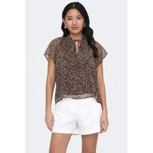 Deze zwarte en beige panterprint top met strikkraag van ONLY geeft je dagelijkse outfits net wat extra uitstraling. De soepele stof valt luchtig om je heen en de korte, wijdere mouwen zorgen voor een relaxed silhouet. De strik bij de hals kun je losjes knopen voor een open halslijn of juist hoger sluiten als je wat meer bedekking wilt.Details die opvallen Panterprint in zwart / beige voor een eigentijdse, speelse look Strikkraag met trekkoorden zodat je de hals eenvoudig aanpast Korte, wijde mouwen geven extra bewegingsvrijheid en een luchtig gevoel Valt normaal volgens maatadvies, kies gewoon je gebruikelijke maat Zonder zakken voor een gladde, nette voorkant Geschikt voor de lente en de rest van het jaar als laagje onder een vest of blazer Onderhoud: handwas, niet strijken en niet drogen in de droogtrommelElke dag makkelijk combinerenDeze top uit de Daily collectie is gemaakt voor alledaags gebruik. Draag de panterprint boven een zwarte jeans of pantalon voor een rustige basis, of combineer met een beige rok voor een zachtere look. Met sneakers oogt het casual, met laarsjes of hakken creëer je snel een meer aangeklede outfit.ONLY: modische basics en eyecatchersONLY staat bekend om modieuze items die goed aansluiten op de trends van nu en tegelijk makkelijk te combineren zijn. Van dagelijkse basics tot opvallende prints, de collecties zijn ontworpen om eindeloos mee te variëren, seizoen na seizoen.Een veelzijdige top die je eenvoudig styled van werkdag tot weekendmoment.