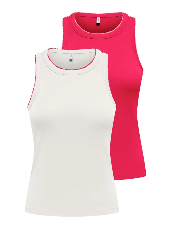 Design: Gevoerde zoom/rand, Geribbelde kraag, Siernaad; Materiaal: Jersey; Halstype: Ronde hals; Motief: Effen; Soort bandjes: Normale bandjes; Extra's: Voelt zacht aan, Huidvriendelijk materiaal; Pasvorm: Slanke pasvorm; Aantal: 2 Pack; Armlengte: Mouwloos; Lengte: Normale lengte
