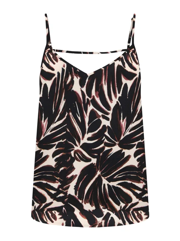 Blouse type: Blouseshirt; Design: Gevoerde zoom/rand, Rechte zoom; Materiaal: Viscose; Halstype: V-hals; Motief: Dierenprint; Kraag: Zonder kraag; Soort bandjes: Spaghettibandjes; Details: Backless; Extra's: All-over patroon, Gladde stof; Pasvorm: Normale pasvorm; Armlengte: Mouwloos; Lengte: Normale lengte