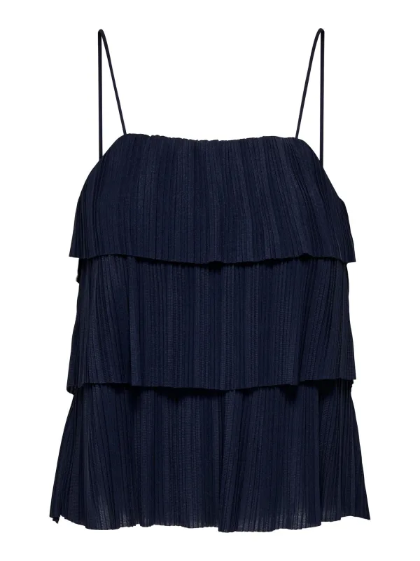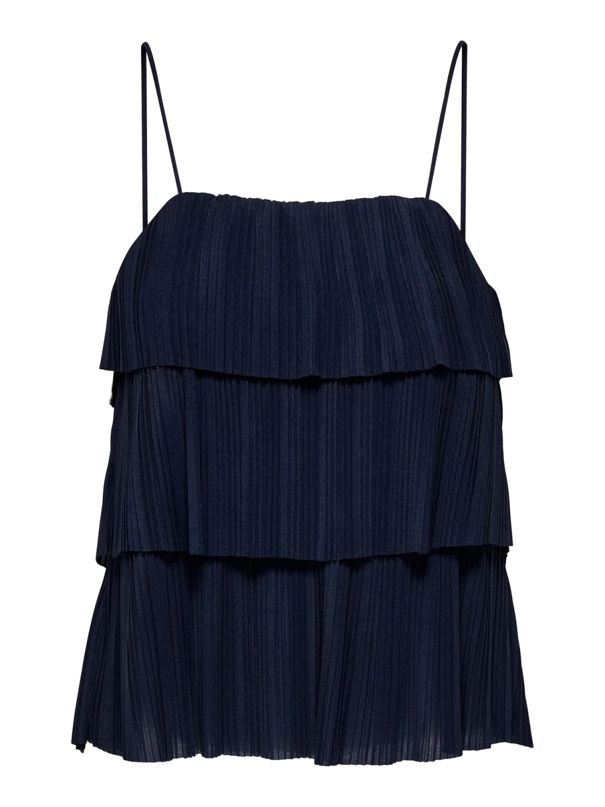 Halstype: Carréhals; Motief: Effen; Soort bandjes: Spaghettibandjes; Details: Volant, Plissé; Extra's: Lichte stof, Met textuur; Pasvorm: Normale pasvorm; Armlengte: Mouwloos; Lengte: Normale lengte
