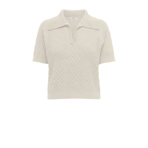 Design: Geribbelde kraag, Rechte zoom, Geribd ceintuurtje; Materiaal: Knitwear; Halstype: Polokraag; Motief: Effen; Details: Mesh; Extra's: Fully fashioned, Met textuur, Voelt zacht aan; Pasvorm: Normale pasvorm; Armlengte: Kwartmouw; Lengte: Normale lengte