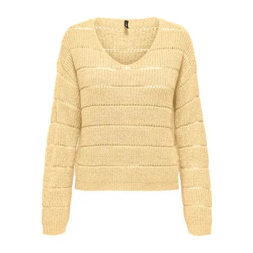Deze ONLY trui Onlpamela Ls V-Neck Pullover is een praktische basic voor elke dag. De trui heeft een vrouwelijke V-hals en een regular fit, waardoor de trui soepel langs het lichaam valt zonder strak te zitten. Het open breisel zorgt voor een licht en luchtig model. Geschikt om solo te dragen of in laagjes, bijvoorbeeld over een top of onder een blazer.Gebreid comfort met subtiele details Regular fit: valt volgens maatadvies normaal en sluit comfortabel rond het lichaam Lange, rechte mouwen voor een rustige, eenvoudige uitstraling Gemaakt van 55% acryl en 45% nylon voor een zachte, soepele stof Effen kleur en open breisel, makkelijk te combineren met verschillende stijlen Geen zakken voor een rustig, minimalistisch silhouetEen trui voor elke dag van de weekDoor de effen kleur en de V-hals is deze trui eenvoudig te stylen. Combineer het model met een jeans voor een casual combinatie of draag het met een pantalon voor een meer geklede set. Het open breisel voegt structuur toe, waardoor de outfit er verzorgd uitziet.ONLY, moderne stijl voor elke dagONLY biedt eigentijdse collecties die inspelen op trends, met stukken die je makkelijk combineert. Het merk richt zich op draagbare mode met een moderne twist, geschikt voor dagelijks gebruik. Met deze trui voeg je een basic toe aan je garderobe waar je vaak naar zult grijpen.Een gebreide trui die moeiteloos meegaat in jouw dagelijkse routine.