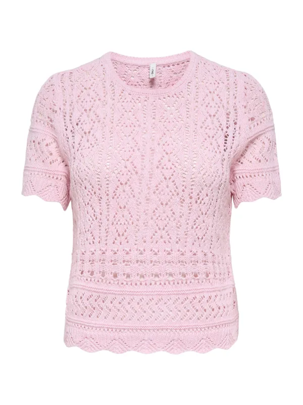 Design: Geribbelde kraag, Geschulpte zoom; Materiaal: Gehaakt; Halstype: Ronde hals; Motief: Effen; Details: Mesh; Extra’s: Met textuur, Voelt zacht aan; Pasvorm: Normale pasvorm; Armlengte: Kwartmouw; Lengte: Normale lengte
