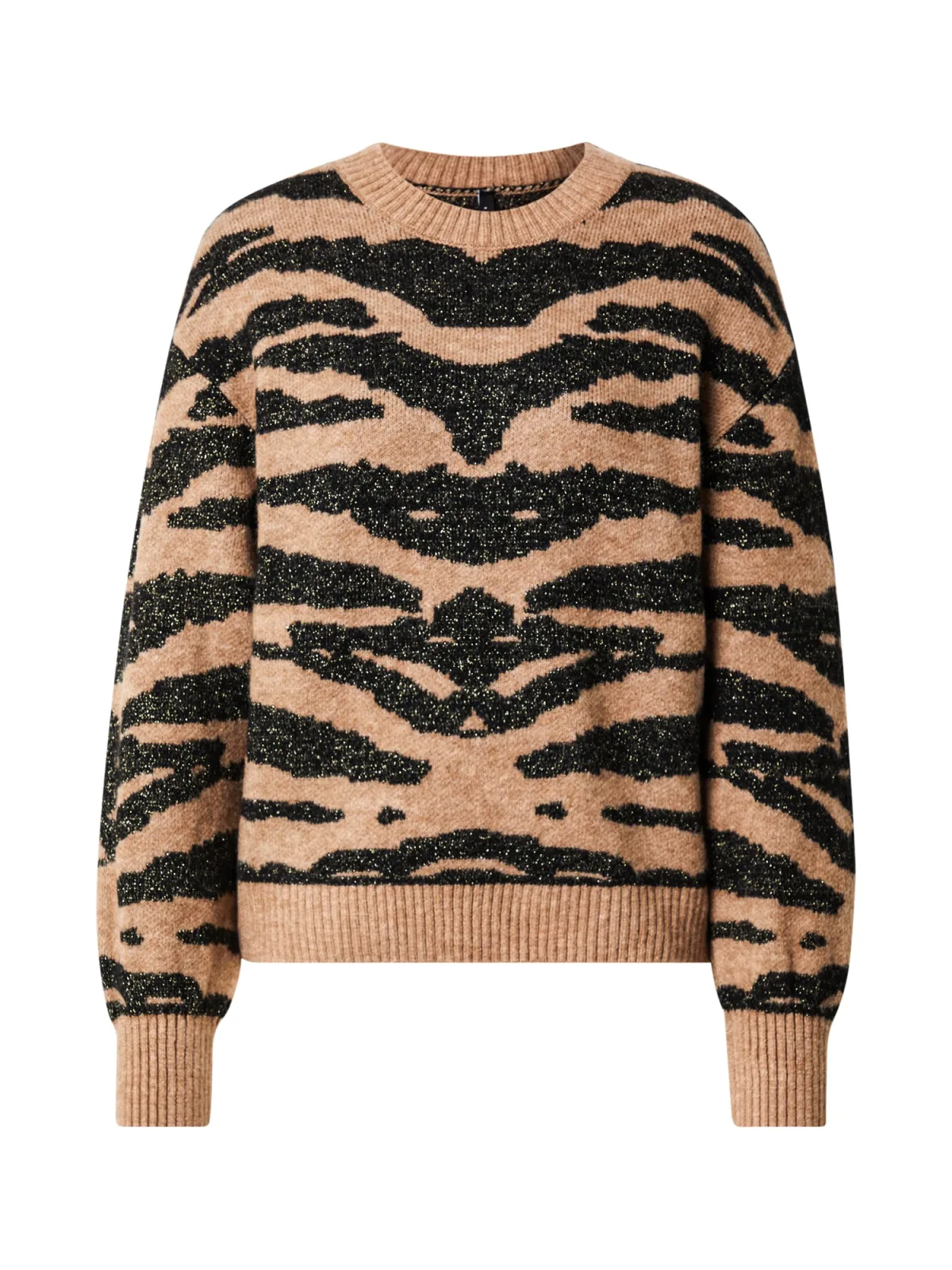 Design: Geribbelde kraag, Geribd ceintuurtje; Materiaal: Knitwear; Halstype: Ronde hals; Motief: Dierenprint; Extra's: All-over patroon, Fully fashioned; Pasvorm: Normale pasvorm; Armlengte: Lange mouw; Lengte: Normale lengte