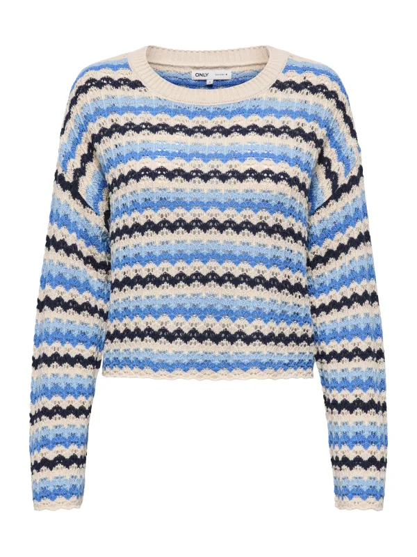 ONLY Trui ‘ONLASA’ crème / saffier / lichtblauw / donkerblauw