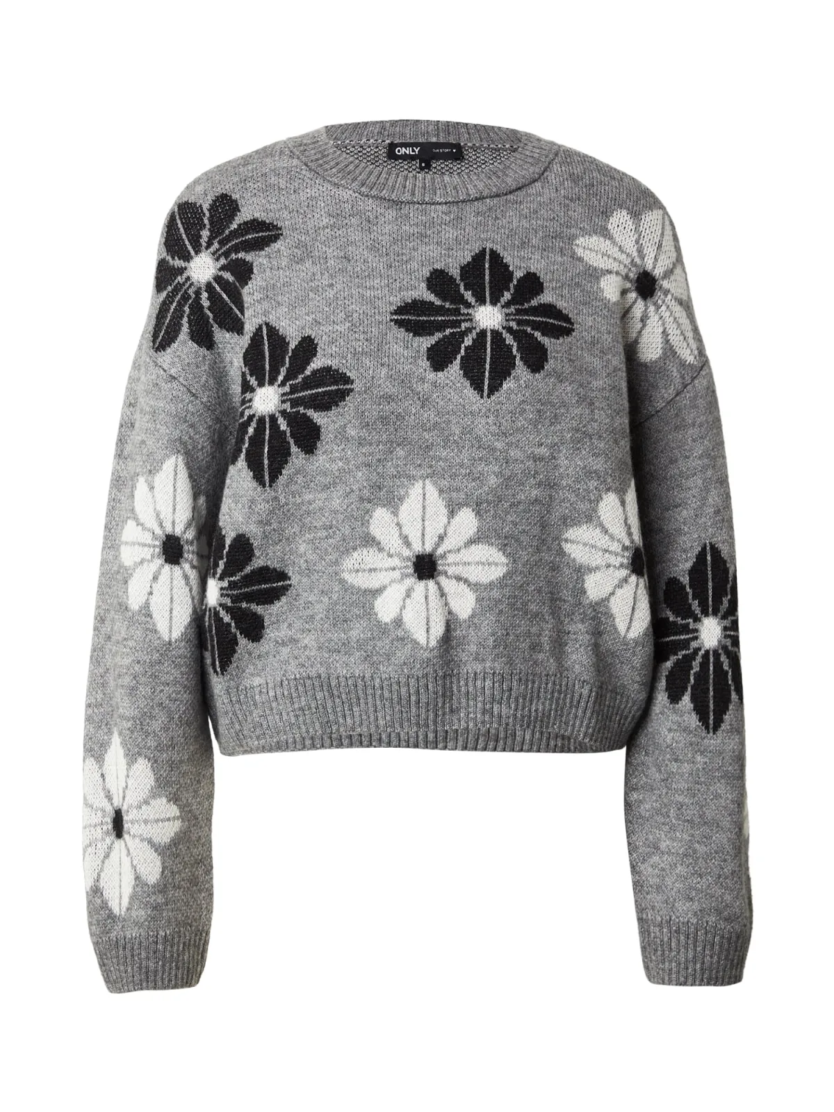 ONLY Trui ‘ONLFREESIA’ grijs gemêleerd / zwart / wit