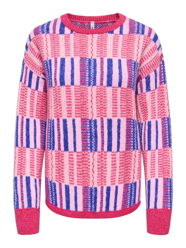 ONLY Trui ‘ONLIRIS’ royal blue/koningsblauw / rosa / lichtroze