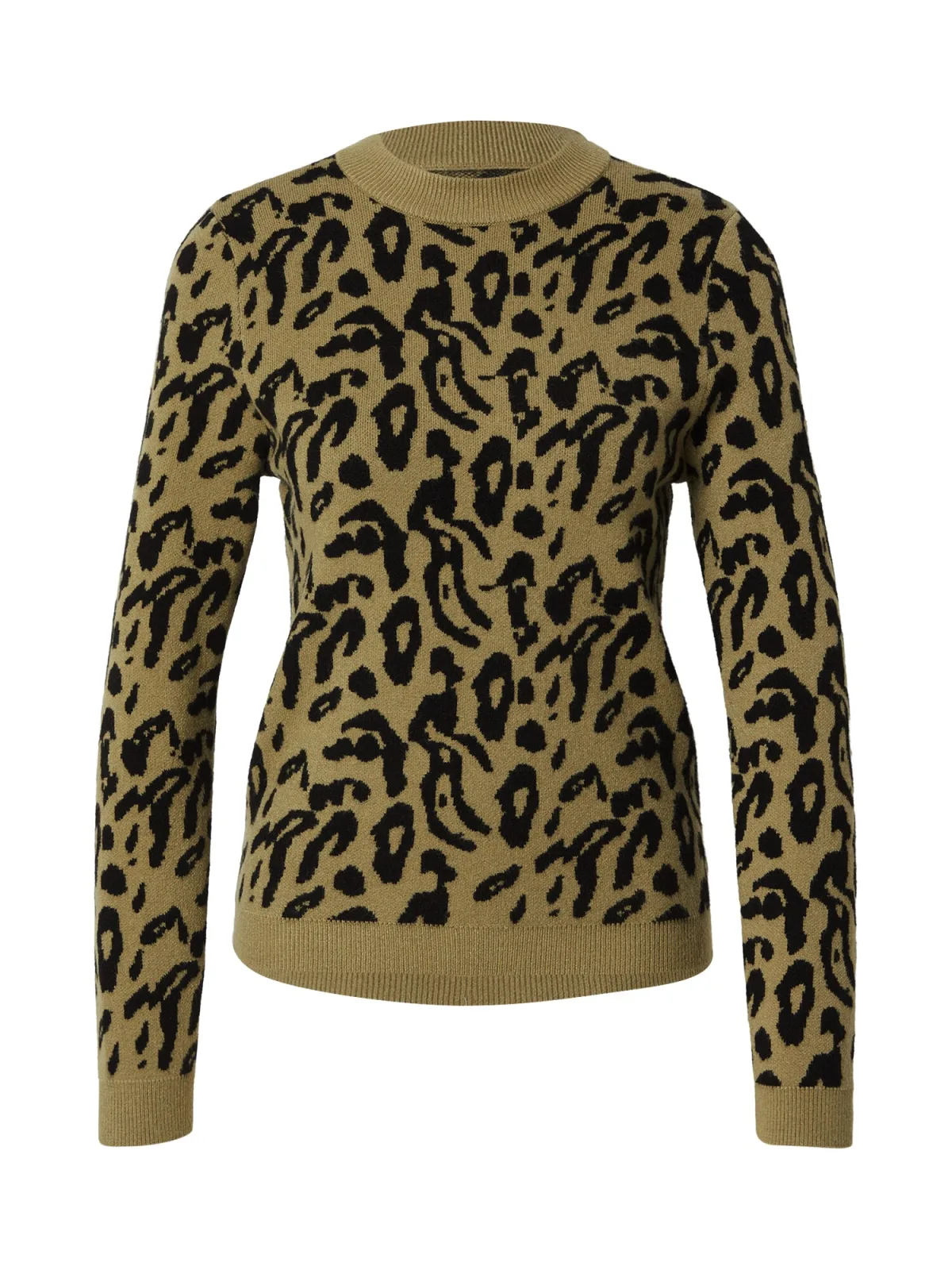 Design: Geribbelde kraag, Geribd ceintuurtje; Materiaal: Knitwear; Halstype: Opstaande kraag; Motief: Dierenprint; Extra's: All-over patroon, Voelt zacht aan; Pasvorm: Normale pasvorm; Armlengte: Lange mouw; Lengte: Normale lengte