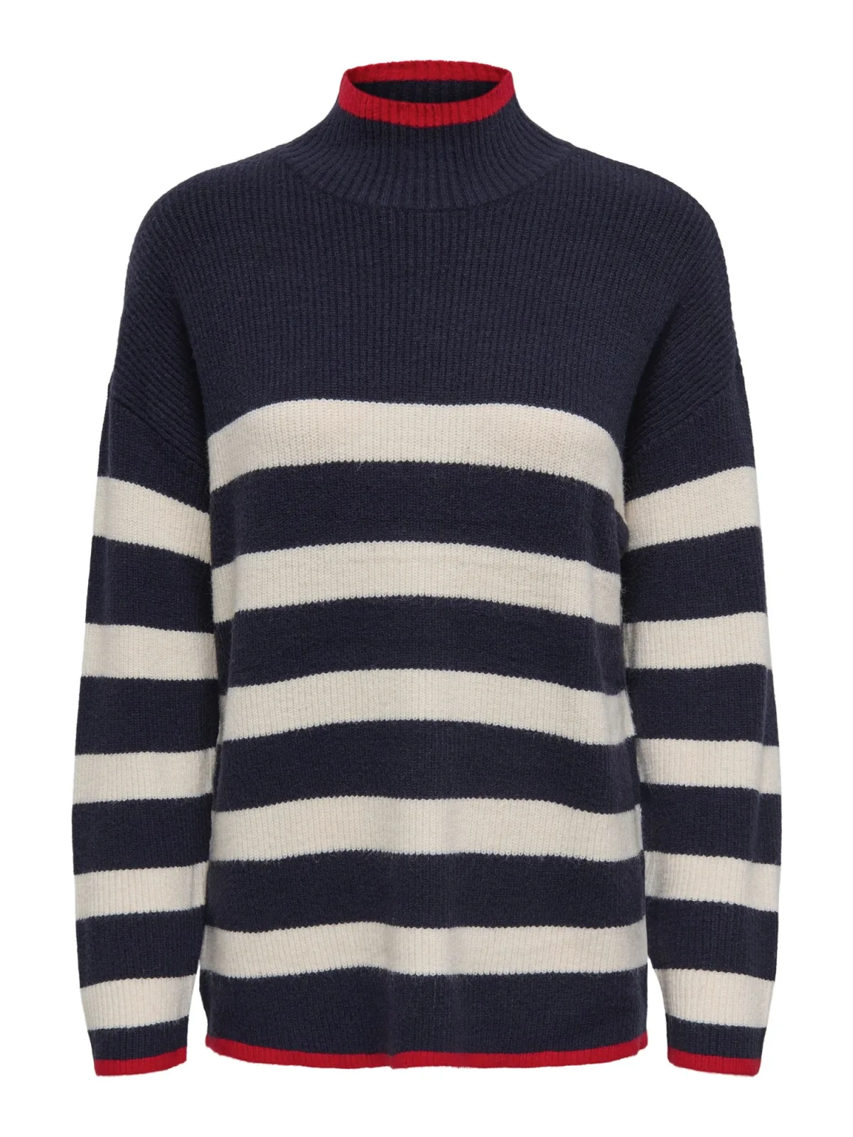 Specificaties: ONLY Trui ‘ONLKATIA’ donkerblauw / knalrood / wit