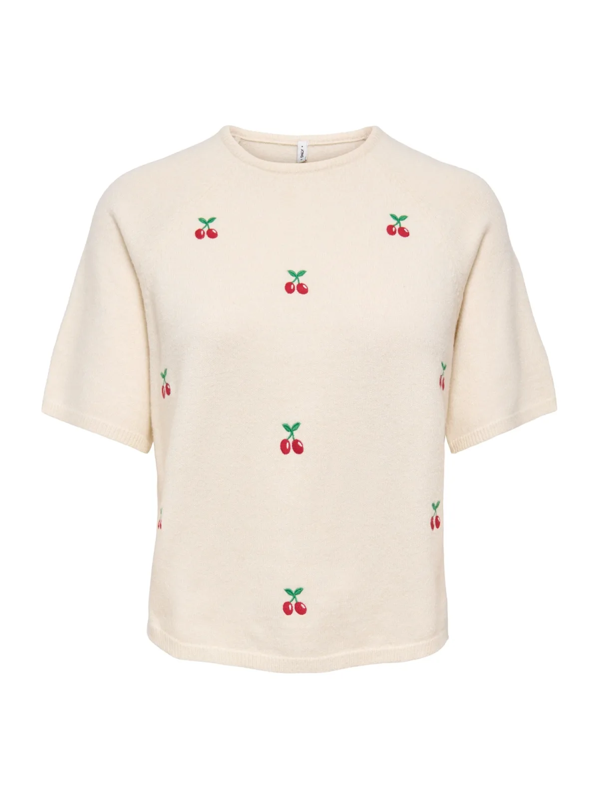 Design: Geribbelde kraag, Raglanmouwen, Geribd ceintuurtje; Materiaal: Knitwear; Halstype: Ronde hals; Details: Borduursels; Extra's: Met textuur, Voelt zacht aan; Pasvorm: Normale pasvorm; Armlengte: Halve mouw; Lengte: Normale lengte