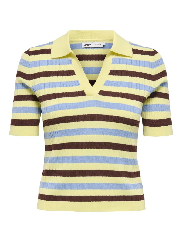 Design: Geribbeld gebreid, Turn-down kraag; Materiaal: Knitwear; Halstype: Polokraag; Motief: Gestreept; Extra's: All-over patroon, Met textuur; Pasvorm: Slanke pasvorm; Armlengte: Kwartmouw; Lengte: Normale lengte