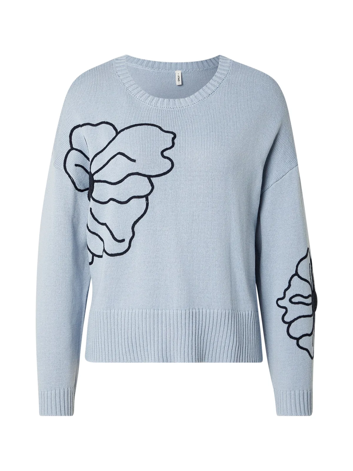 Design: Geribd ceintuurtje, Overcut schouder; Materiaal: Knitwear; Halstype: Ronde hals; Motief: Bloemenprint; Details: Borduursels; Extra's: Applicaties, Voelt zacht aan; Pasvorm: Losse pasvorm; Armlengte: Lange mouw; Lengte: Normale lengte