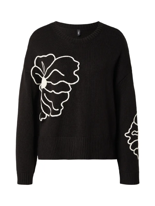 Design: Geribd ceintuurtje, Overcut schouder, Brede mouwopeningen; Materiaal: Knitwear; Halstype: Ronde hals; Motief: Bloemenprint; Details: Borduursels; Extra's: Applicaties, Voelt zacht aan; Pasvorm: Losse pasvorm; Armlengte: Lange mouw; Lengte: Normale lengte