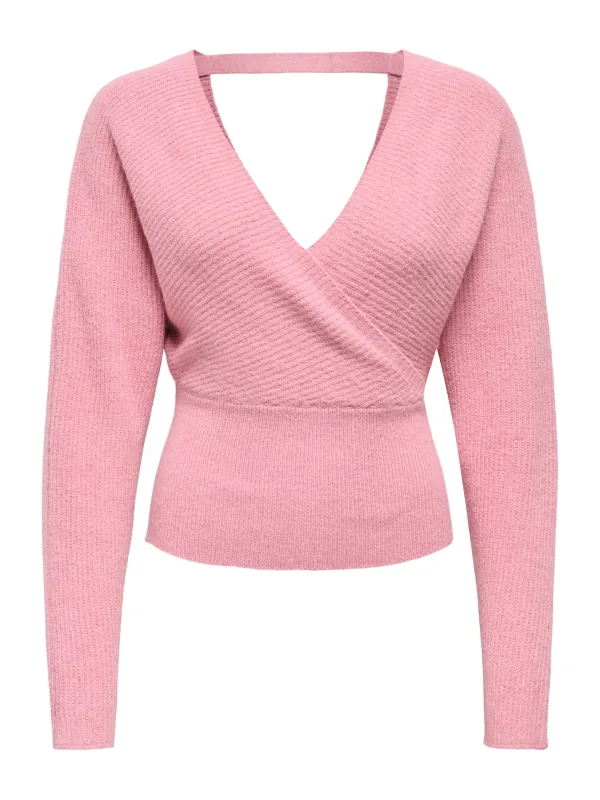 Design: Vleermuismouwen, Diepe snit/decolleté, Uitgesneden rug; Materiaal: Knitwear; Halstype: Wikkeltop; Motief: Effen; Details: Cut-outs; Extra's: Met textuur, Voelt zacht aan; Pasvorm: Losse pasvorm; Armlengte: Lange mouw; Lengte: Normale lengte