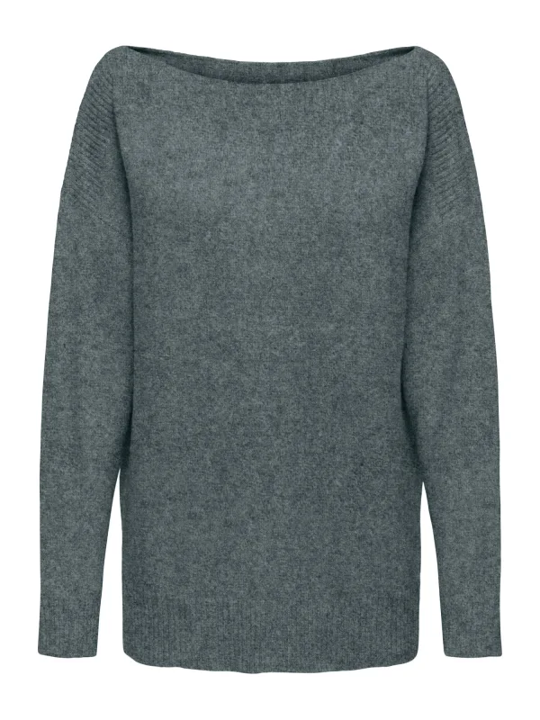 Design: Geribbelde kraag, Rechte zoom, Geribd ceintuurtje, Overcut schouder; Materiaal: Knitwear; Halstype: Boothals; Motief: Mélange; Extra's: Fully fashioned, Voelt zacht aan; Pasvorm: Losse pasvorm; Armlengte: Lange mouw; Lengte: Lange pasvorm