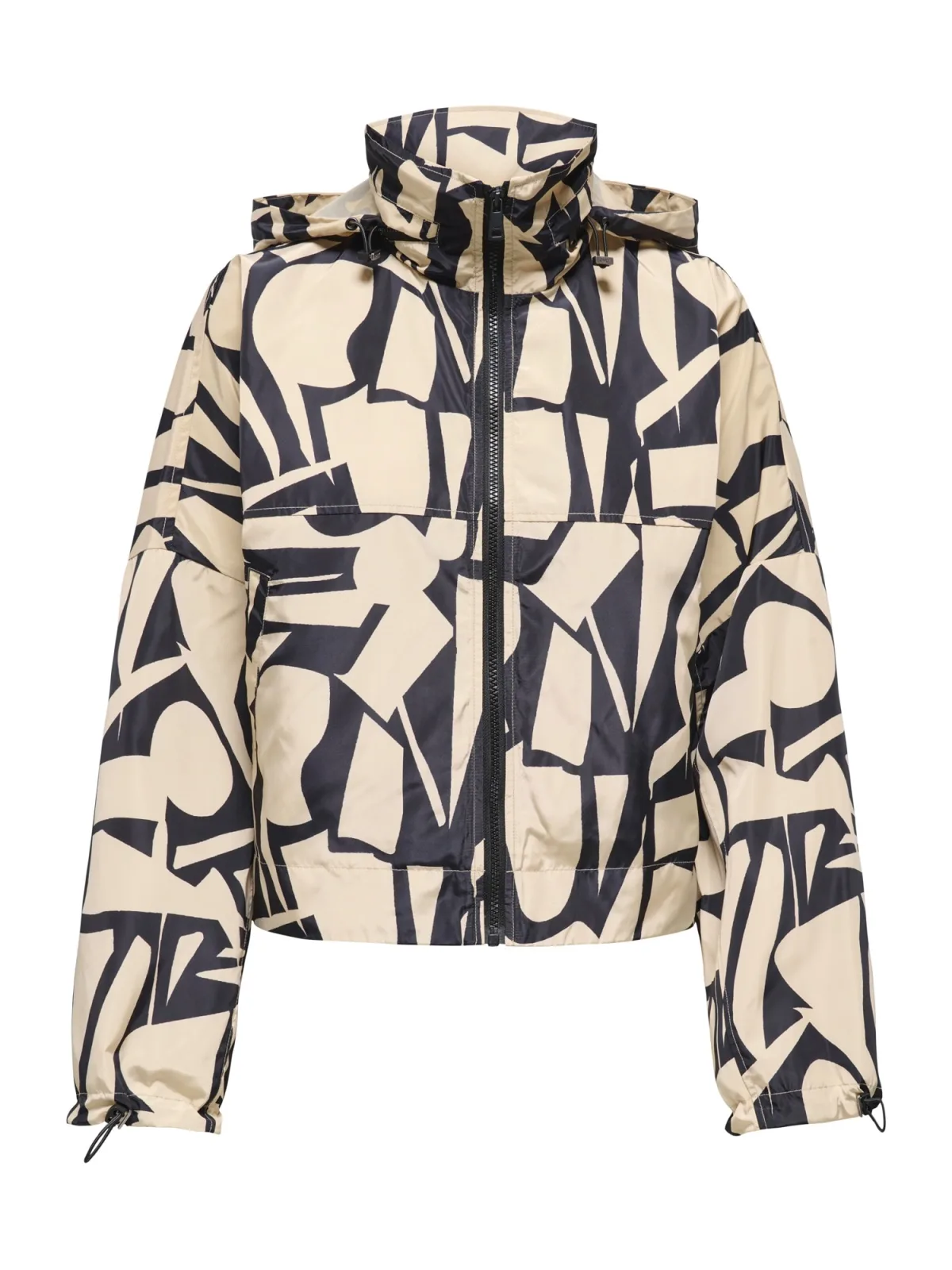 Dames overhemdjack van Only;Model 'Betty Batsleeve';Look: All-over motief;Pasvorm: Oversized;Kraagmodel: Opstaande kraag met opbergbare capuchon;Sluiting: Ritssluiting;Patroon: grafisch;Lengte: Kort;Mouwvorm: vleermuismouwen;Mouwboord: elastisch;Zakken: zij-steekzakken