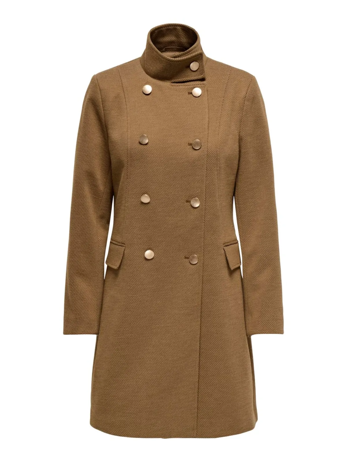Type mantel: Klassieke mantel; Design: Knop placket, Staande kraag, Opzet-/flapzak; Type sluiting: Knoopsluiting; Voering: Licht gevoerd; Motief: Effen; Extra's: Op staal naden, Zware stof; Pasvorm: Slanke pasvorm; Lengte: Normale lengte