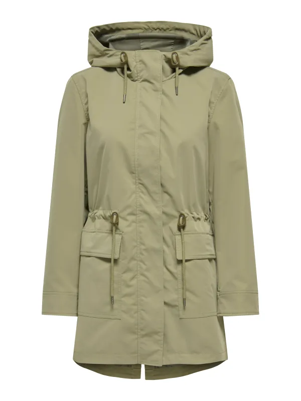 Damesparka van Only;Model 'Louise';Look: effen;Pasvorm: Regular fit ;Kraagmodel: Capuchon met tunnelkoord;Sluiting: Ritssluiting, drukknopen;Details: Tunnelkoord in de taille.;Mouwvorm: lange mouwen;Zakken: Klepzakken