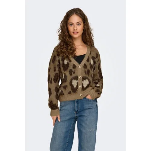 Design: Knop placket, Geribd ceintuurtje; Type sluiting: Knoopsluiting; Materiaal: Gerecycled materiaal; Halstype: V-hals; Motief: Dierenprint; Extra's: All-over patroon, Met textuur; Pasvorm: Normale pasvorm; Armlengte: Lange mouw; Lengte: Normale lengte