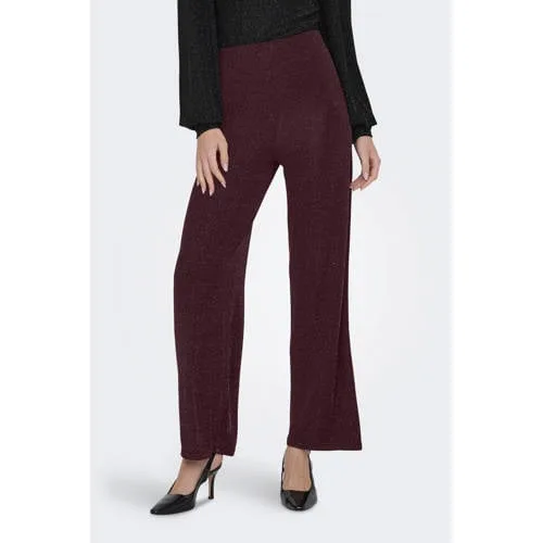ONLY wide leg casual broek met glitter donkerrood Prijzen