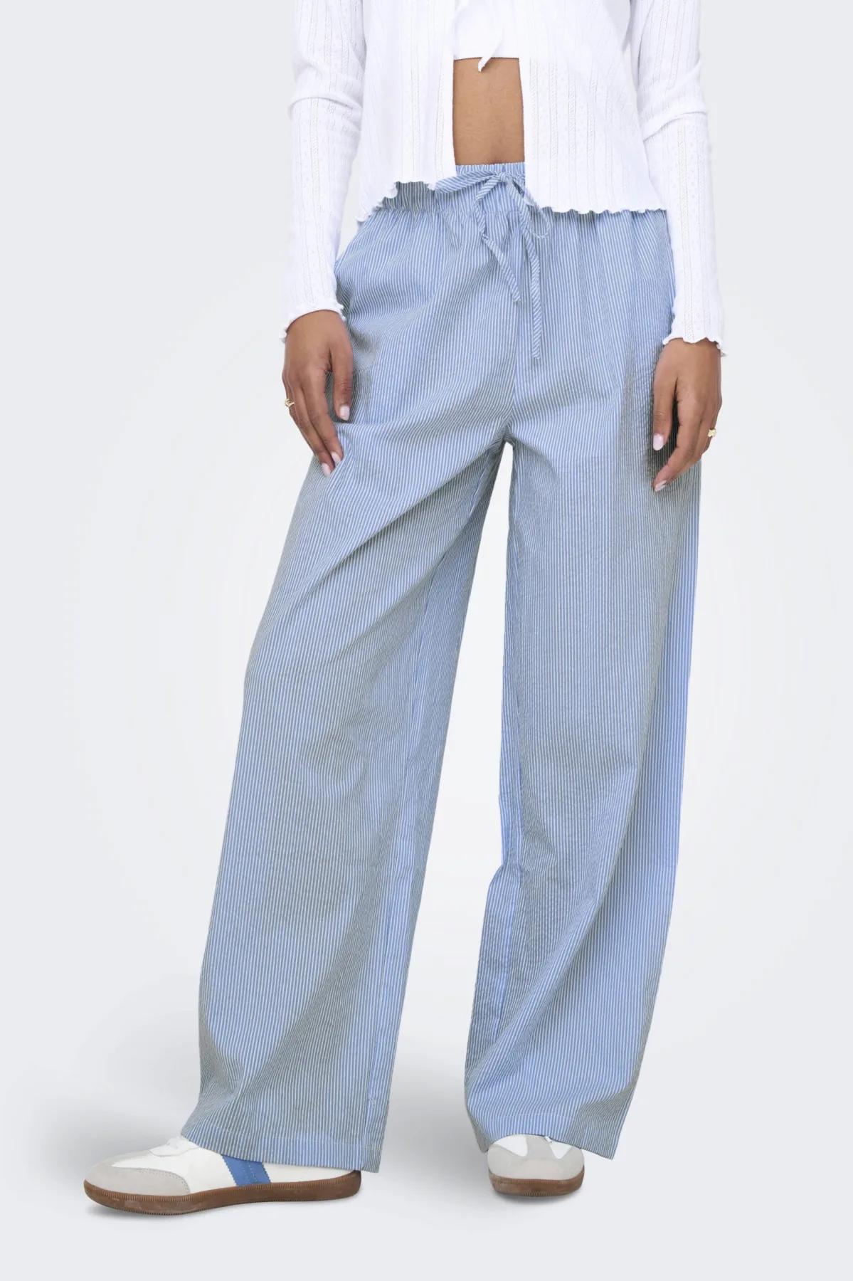 Dames wijdte broek van Only;Model 'Augusta';look: all-over motief;Pasvorm: loose fit;Patroon: gestreept;boord: elastisch met tunnelkoord;Zakken: steekzak;Materiaal: puur katoen