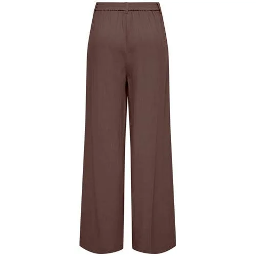 Voor ontspannen dagen en nette momenten is deze bruine wide leg broek van viscose en linnen een fijne basis in je kledingkast. De broek heeft een lange, losse pijp en een regular waist, waardoor het model soepel langs je benen valt. De effen bruine kleur is makkelijk te combineren met tops en blouses in verschillende tinten, van licht tot donker.Verfijnde details voor elke dag Gemaakt van 80% viscose en 20% linnen, met een soepele en luchtige touch Wide leg pasvorm voor een ruim en recht silhouet Elastische tailleband voor een comfortabele aansluiting in de taille Praktische zakken voor en achter, plus subtiele sierzakken Effen bruine kleur, eenvoudig te stylen van casual tot netjes Lengte: lang, ideaal te dragen met sneakers, sandalen of loafers Maatadvies: dit artikel valt normaal Wasadvies: handwas, niet strijken en niet drogen in de droogtrommelCasual look met een nette twistDeze broek past goed bij jouw dagelijkse garderobe. Combineer de broek met een eenvoudig T-shirt voor een relaxte dag of met een blouse voor een wat gekledere look. De luchtige stof maakt deze broek vooral in het voorjaar en op mildere dagen een praktische keuze.ONLY stijl voor elke dagONLY staat bekend om modieuze items die makkelijk in het dagelijks leven passen. De collecties sluiten aan op actuele trends, met veel aandacht voor draagbaarheid en toegankelijke stijl. Zo vul je je garderobe met kleding die je graag en vaak uit de kast pakt.Een veelzijdige broek waarmee je moeiteloos verschillende outfits samenstelt.