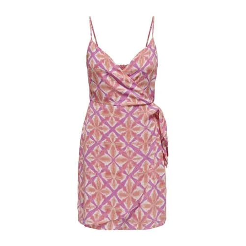 ONLY wikkeljurk met all over print roze/ecru/oranje