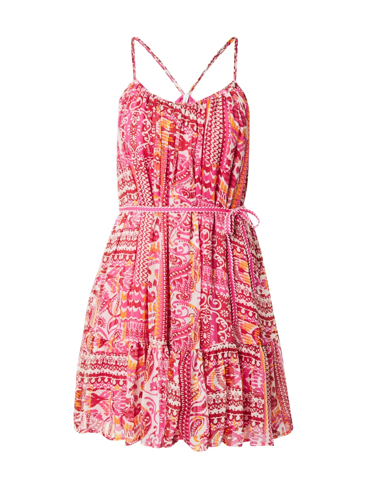 ONLY Zomerjurk ‘ONLASTA’ oranje / fuchsia / bloedrood / wit
