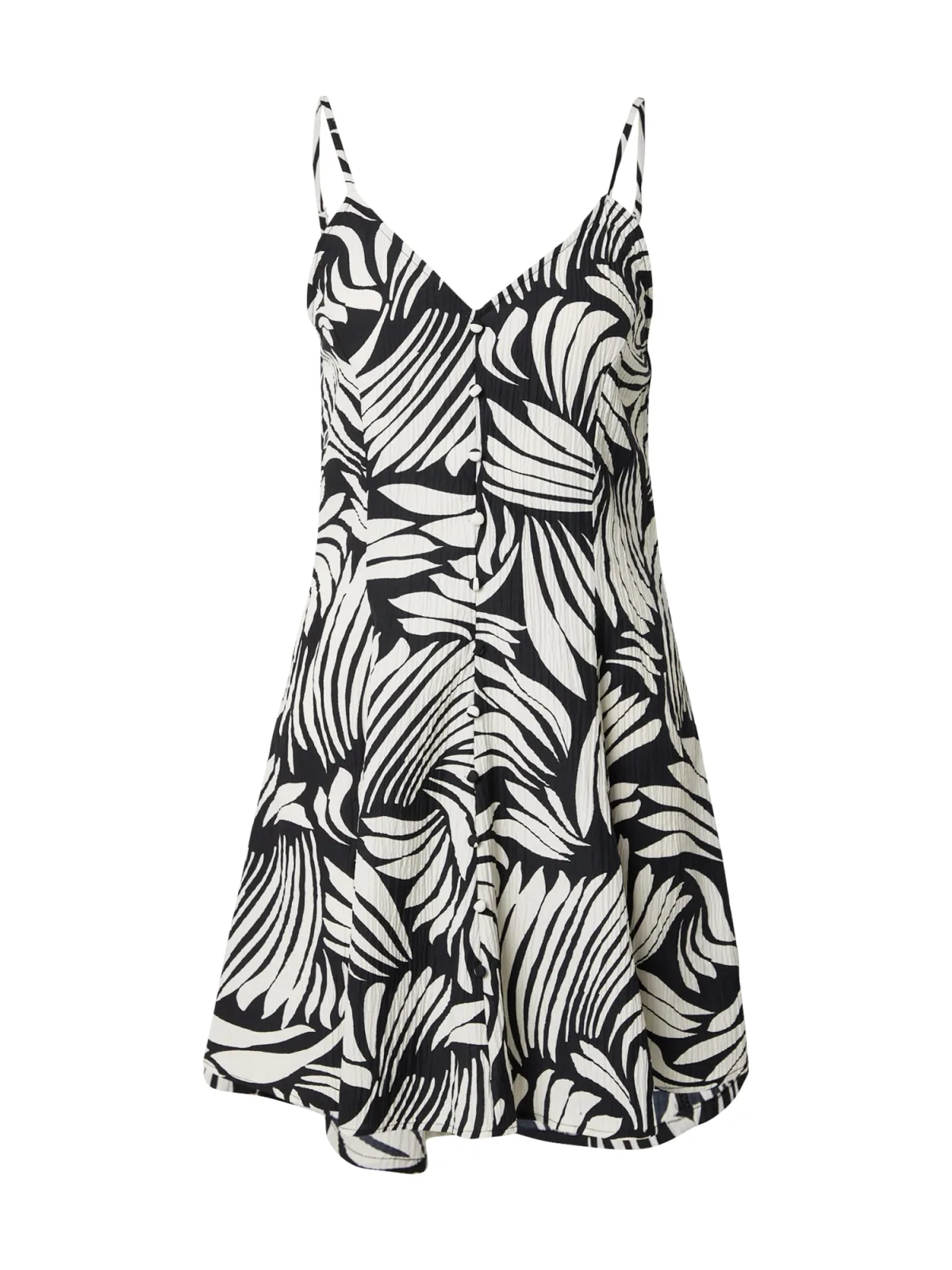 Design: Gevoerde zoom/rand, Om te knopen/binden, Uitgesneden rug; Halstype: V-hals; Motief: Bloemenprint; Soort bandjes: Spaghettibandjes; Extra's: All-over patroon, Gladde stof; Lengte: Kort/mini; Snit: Getailleerd; Pasvorm: Normale pasvorm; Armlengte: Mouwloos