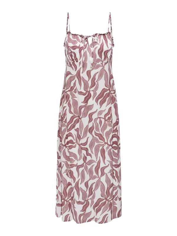 Design: Gevoerde zoom/rand, Rug rits, Om te knopen/binden; Type sluiting: Ritssluiting; Materiaal: Viscose; Halstype: Carréhals; Motief: Bloemenprint; Soort bandjes: Spaghettibandjes; Details: Cut-outs, Ruches, Gedrapeerd; Extra's: All-over patroon, Gladde stof; Lengte: 3/4 lengte; Snit: Getailleerd; Pasvorm: Normale pasvorm; Armlengte: Mouwloos