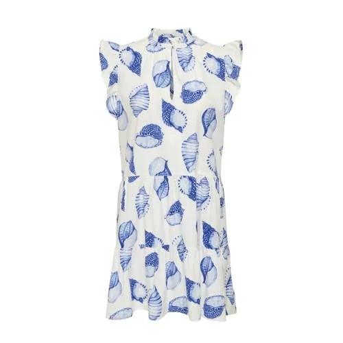 Design: Gevoerde zoom/rand, Keyholesluiting; Type sluiting: Knoopsluiting; Materiaal: Katoen; Halstype: Opstaande kraag; Details: Cut-outs, Ruches, Volant, Gedrapeerd; Extra's: All-over patroon, Lichte stof; Lengte: Kort/mini; Snit: Uitlopend; Pasvorm: Losse pasvorm; Armlengte: Kwartmouw