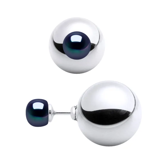 Oorbellen DUPLEX - Diameter 12 mm 925 duizendste rhodium - zoetwater gekweekte parels 6mm - ZWART - zilveren bal Security System - Wordt geleverd in een koffer met een certificaat van echtheid en een internationaal Garantie - Al onze sieraden worden vervaardigd in Frankrijk.