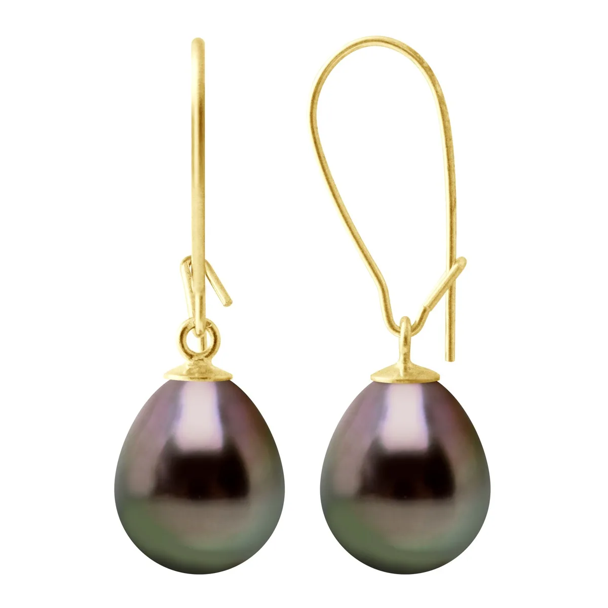 Oorbellen Echte Gekweekte TAHITI Parel 9-10 mm - Geel Goud 375 - Veilige Sluiting met Haak - Onverloren Geleverd met Certificaat van Echtheid en Internationale Garantie - MADE IN FRANKRIJK -