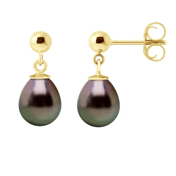 Oorbellen Echte Gecultiveerde TAHITI Parels Parel 8-9 mm - Stift Sluiting / Bal Goud - Geel Goud 375 - Wordt geleverd met een Certificaat van Echtheid en Internationale Garantie - GEMAAKT IN FRANKRIJK - *Een Paar Vlinder-sluiting SILICONEN wordt u gratis aangeboden bij deze aankoop