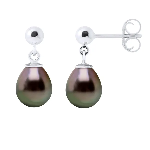 Oorbellen Echte Gecultiveerde TAHITI Parel Paar 8-9 mm - Stang Sluiting / Bal Goud - Wit Goud 375 - Geleverd met Certificaat van Authenticiteit en Internationale Garantie - GEMAAKT IN FRANKRIJK - *Een paar Butterfly Sluitingen van SILICONE wordt u gratis aangeboden bij deze aankoop