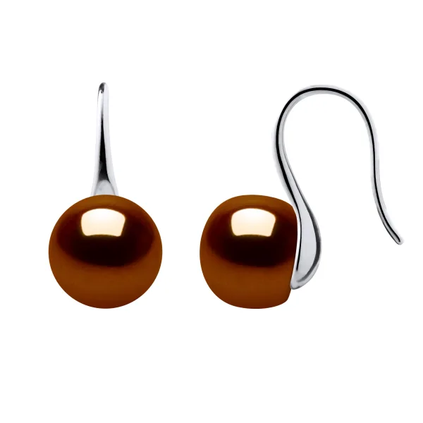 Oorbellen Hooks True gekweekte parels Zoetwater Buttons 9-10 mm - Kwaliteit AAAA + - COLORI CHOCOLADE - System Haken-allergeen - Jewelry 925 duizendste - 2 jaar garantie op fabricagefouten - Geleverd in hun presentatie geval met een Certificaat van Echtheid en een internationale garantie - Al onze juwelen zijn gemaakt in Frankrijk.