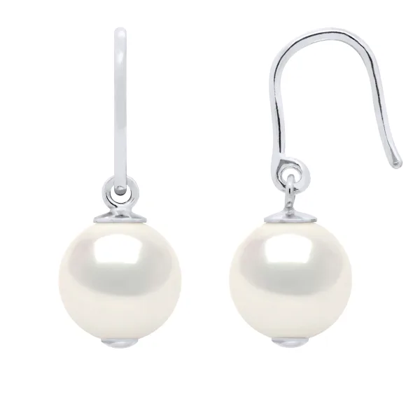 Oorbellen - 925 duizendste - zoetwater gekweekte parels rond 8-9 mm - Wit - scharnierende haaksysteem - Wordt geleverd in een koffer met een certificaat van echtheid en een internationale garantie - Al onze juwelen zijn gemaakt in Frankrijk.