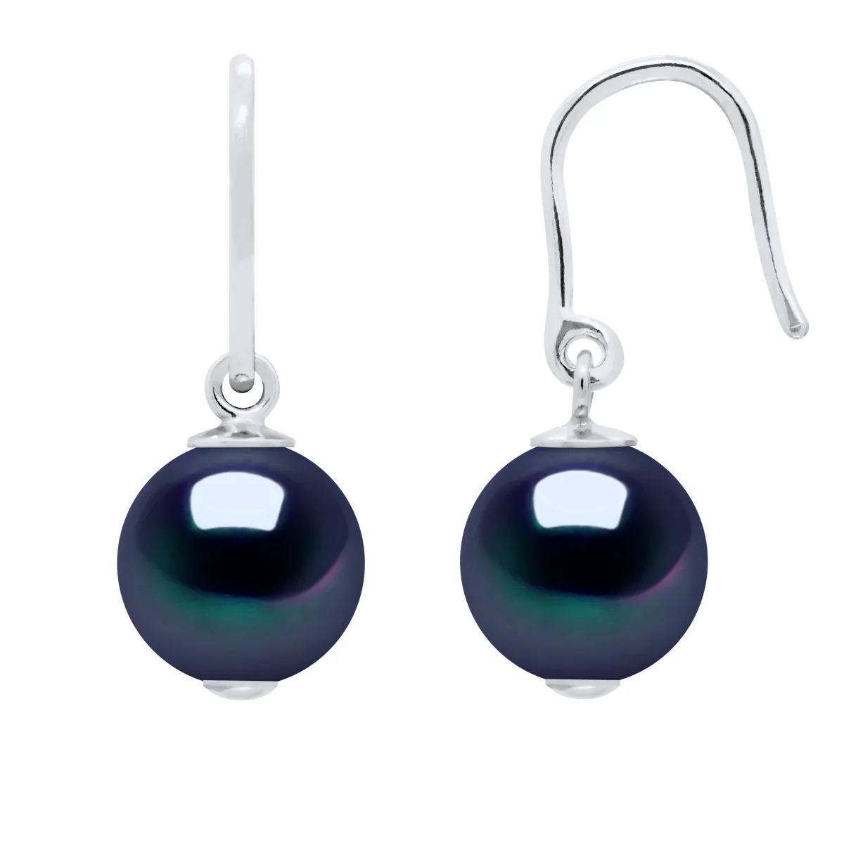 Oorbellen - 925 duizendste - zoetwater gekweekte parels 8-9 mm rond - ZWART - scharnierende haaksysteem - Wordt geleverd in een koffer met een certificaat van echtheid en een internationale garantie - Al onze juwelen zijn gemaakt in Frankrijk.