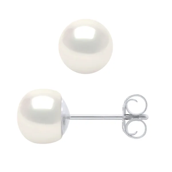 Oorbellen - 925 duizendste - zoetwater gekweekte parels knop 6-7 mm - Wit - kinderwagens systeem - Wordt geleverd in een koffer met een certificaat van echtheid en een internationale garantie - Al onze juwelen zijn gemaakt in Frankrijk.